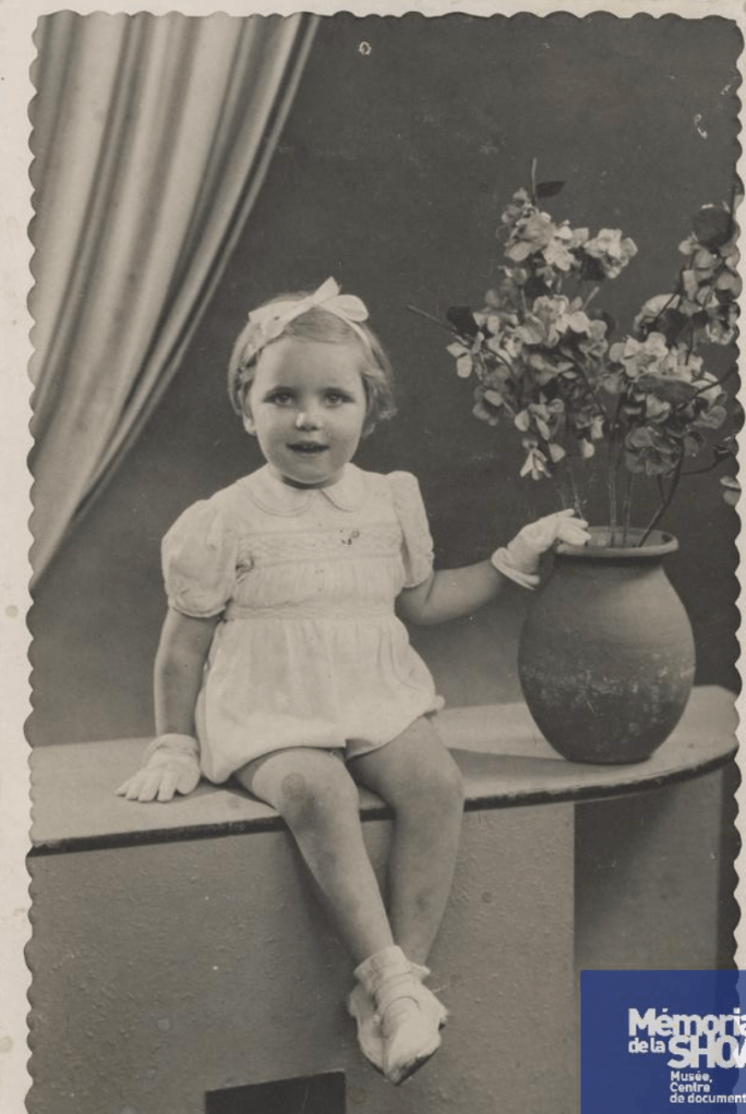Mireille Roth est née le 1er janvier 1939 à Paris. Ses parents Mendel (1903-1942) et Bayla née Jedwab (1900-1942) sont nés en Pologne. La famille compte une fille aînée, Hinda, née en 1927 en Pologne. Ils demeurent au 176, rue du Temple, Paris (3è). Ils sont arrêtés lors de la rafle du Vel’ d’Hiv le 16 juillet 1942 puis internés au camp de Beaune-la-Rolande d’où Hinda et son père partent le 5 août par le convoi 15 et Bayla 2 jours plus tard par le convoi 16. La petite Mireille a certainement été confiée à la pouponnière de Neuilly à partir de là. Elle fait partie des enfants raflés la semaine du 22 juillet 1944 et du convoi 77.