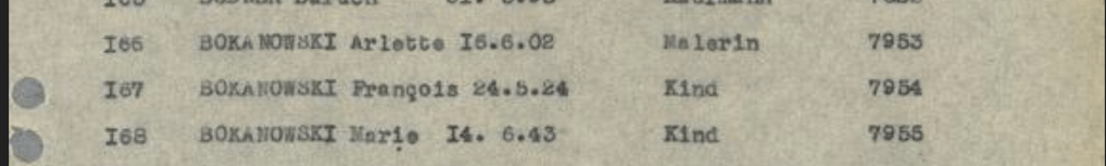 Pierre (1933-1943), Myriam, (1934-1943), Antoine (1937-1943), Francine (1940-1943)