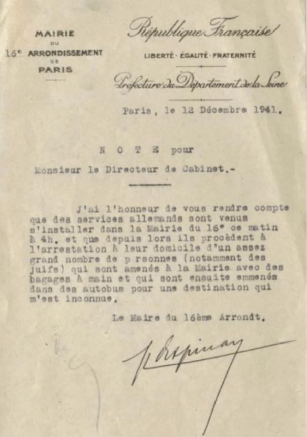Le 12 décembre 1941, les autorités allemandes, avec le concours de la police parisienne, ont organisé la première rafle d’envergure ciblant exclusivement des hommes juifs de nationalité française issus de l’élite intellectuelle. C’est la rafle des Notables. 743 personnes sont regroupées à l’École militaire et transportées le lendemain au camp militaire allemand de Royallieu à Compiègne. Georges et Robert Dreyfus, les cousins de Raymond Berr, en font partie.