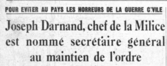 « (…) Darnand vient d’être nommé commissaire au Maintien de l’ordre. Je ne sais pas qui c’est, sinon un de ces gangsters protégés par les nazis qui surgissent partout. »