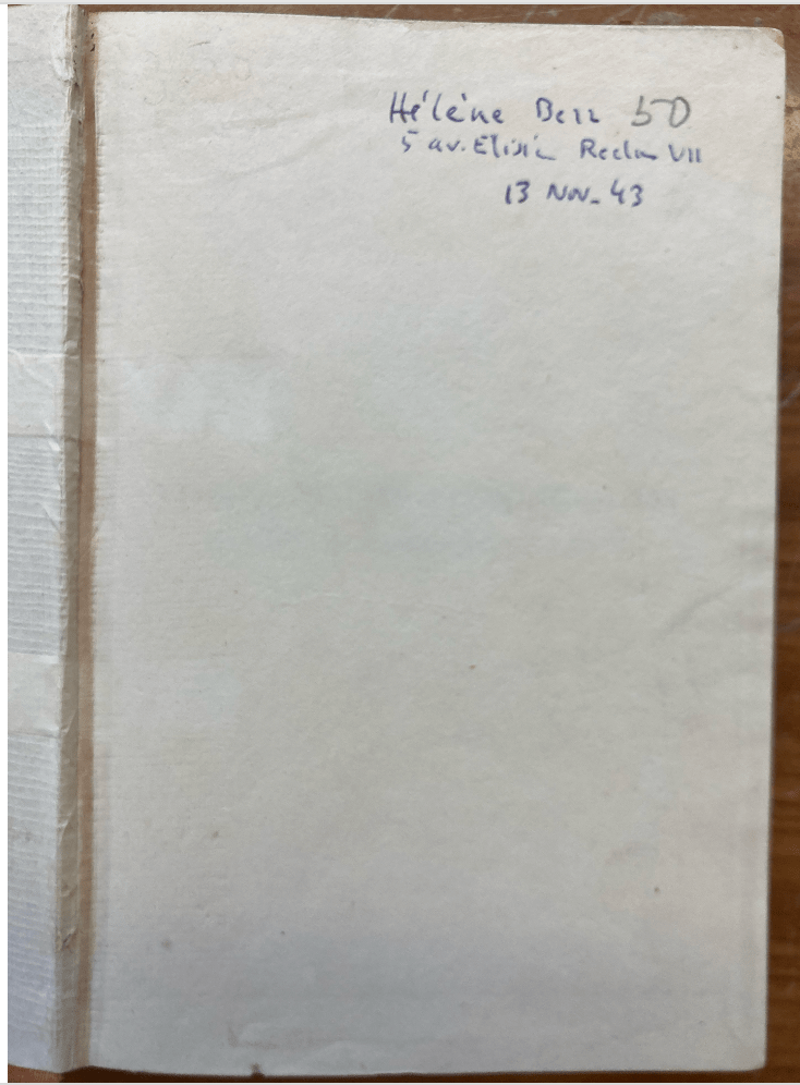 « Ceci est peut-être en effet la dernière lettre que tu recevras de moi… pour quelques temps. Tu as bien failli ne pas la recevoir. Ce matin tout mon bureau est parti, et il a fallu un hasard inouï (j’allais chercher Charles pour le mener à la gare car il partait en vacances) pour que je ne m’y trouve pas. Je ne savais rien de précis, je n’avais entendu que des bruits à l’hospice cet après-midi ; mais je viens d’aller chez Françoise B. ma grande amie – et j’ai appris qu’elle était à D[rancy] – Pourquoi faut-il que le hasard ait fait que je ne sois pas avec elle ? Je voulais justement t’écrire, car je vois que tu as du avoir beaucoup de peine, pour Oncle A[ndré Baur] j’ai reçu hier ta lettre « sale » (pas tant que ça), et tu ne paraissais pas au courant. Tante O[dette Baur] est merveilleuse. Viviane venait de la voir; elle est toujours ici, je crois. Je ne sais pas où je serai demain. Personnellement, cela m’importe peu ; la perspective m’a toujours été si présente ; peut-être est-ce que je manque d’imagination ? Cela me dégoûte même un peu d’être restée en arrière – c’est bête de dire cela, mais pourquoi cacher mes sentiments ? La seule chose qui m’angoisse dans tout cela, c’est que je ne sais pas où est Jean. Il y a huit jours (après un silence de huit jours), j’ai reçu une carte de lui, avec 4 lignes au crayon, disant qu’il partait pour l’Allemagne sans pouvoir me revoir, – il ajoutait en P.S. qu’il tâcherait de voir Rose [ les Anglais ] Dimanche dernier – Depuis, c’est à nouveau le silence – S’il m’arrive quelque chose, je ne saurai même pas où il est. »