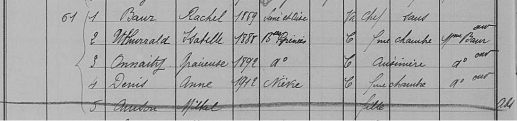 Rachel Baur et ses employées de maison au 15, avenue d’Eylau dans le recensement de 1936