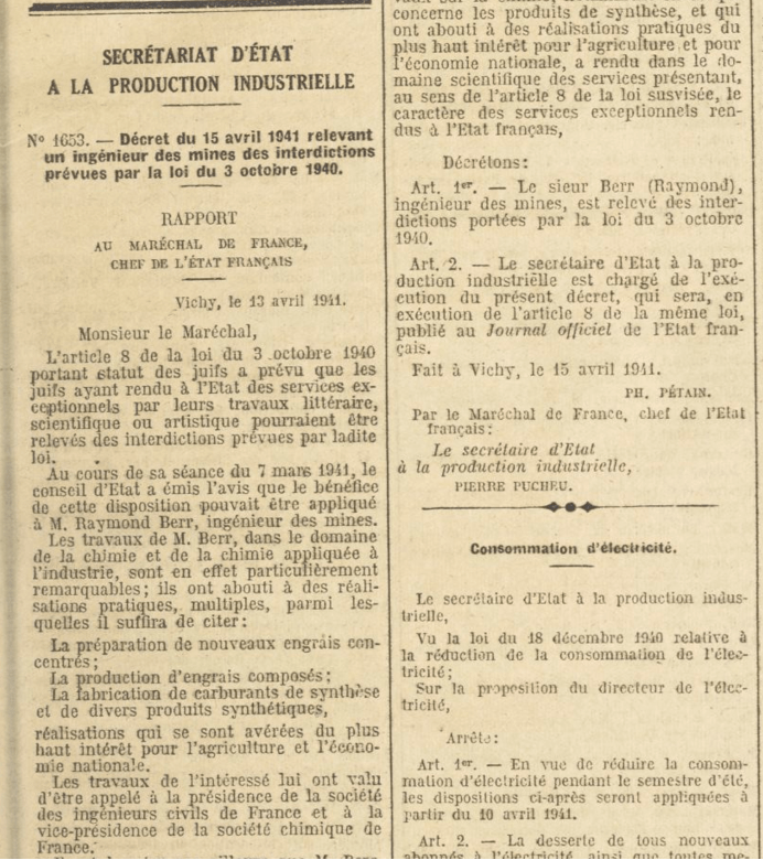 Source : Journal Officiel de la République Française, 26 mars 1943 et 3 avril 1943