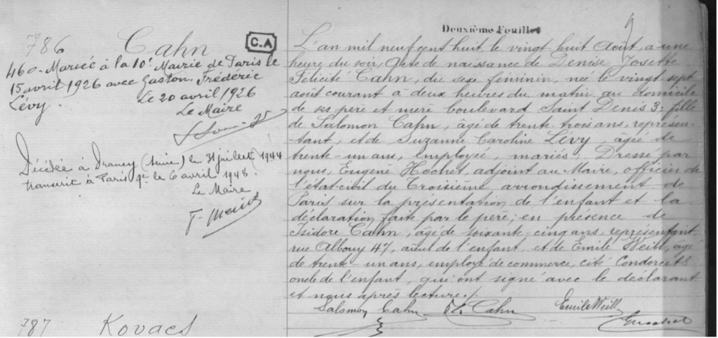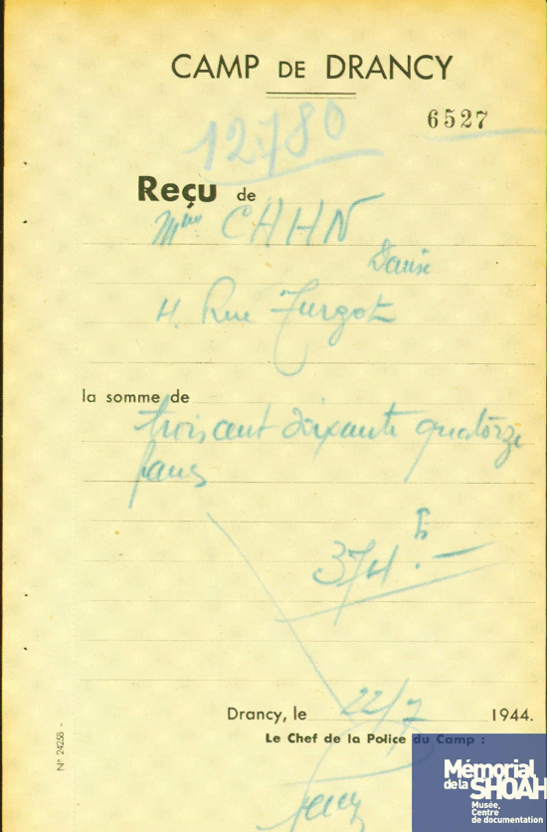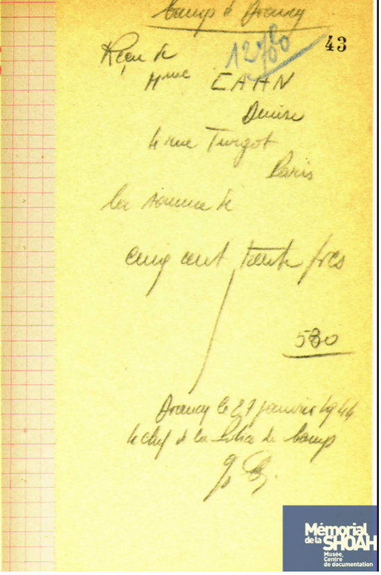 Reçus de Drancy pour les deux arrestations de Denise Cahn.