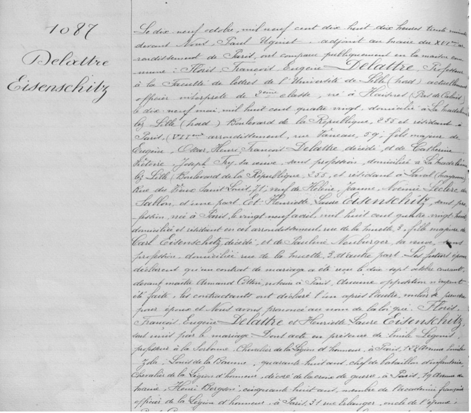 Le philosophe Henri Bergson, oncle de ces deux dernières, en était le témoin.
