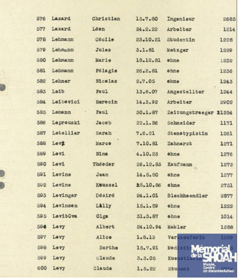 Louise est déportée 2 semaines plus tard. Le récit de l’arrestation de Louise est mentionné dans Dora Bruder de Patrick Modiano.