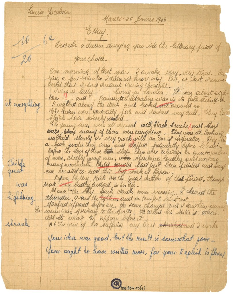 On retrouve dans la rédaction de la jeune fille les écrivains romantiques chers à Hélène.