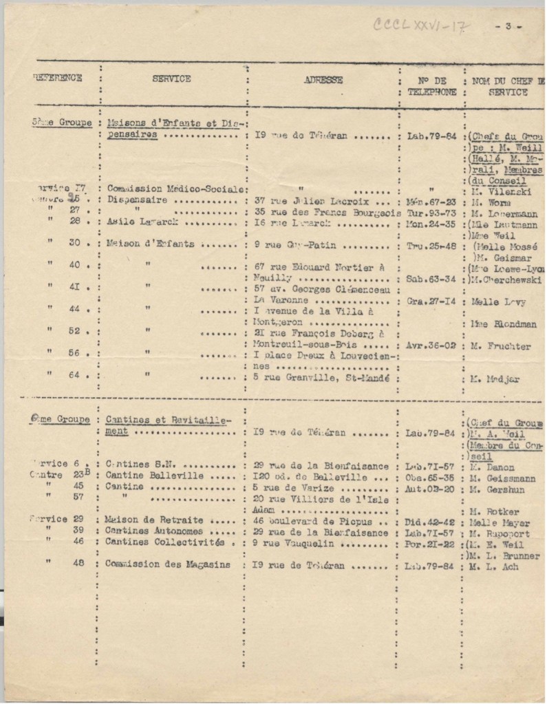 Liste des services de l’UGIF avec Simone Loewe-Lyon au service 40