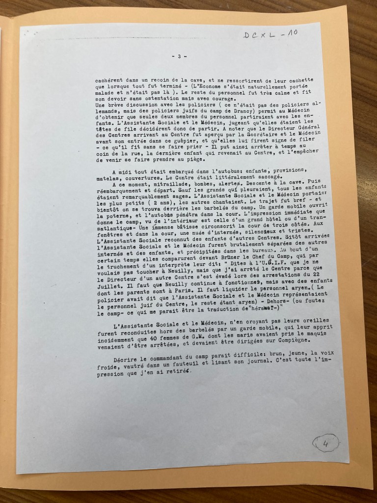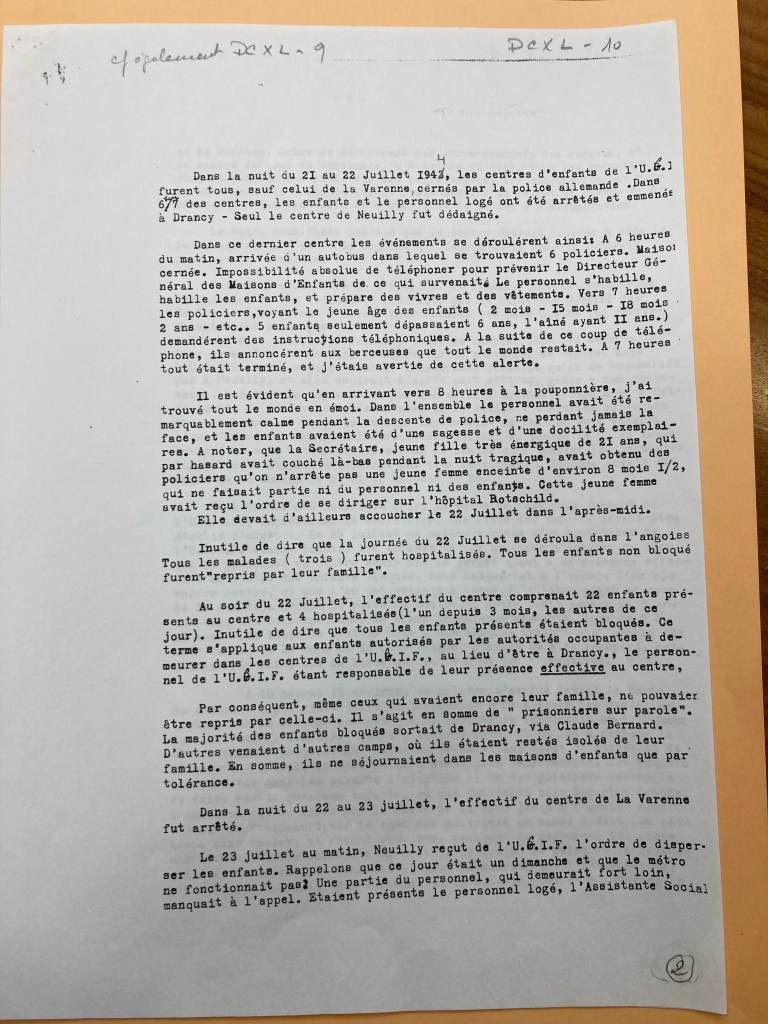 Témoignage du Dr Loewe-Lyon au sujet de la rafle des centres d’enfants de l’UGIF les 21 et 22 juillet 1944