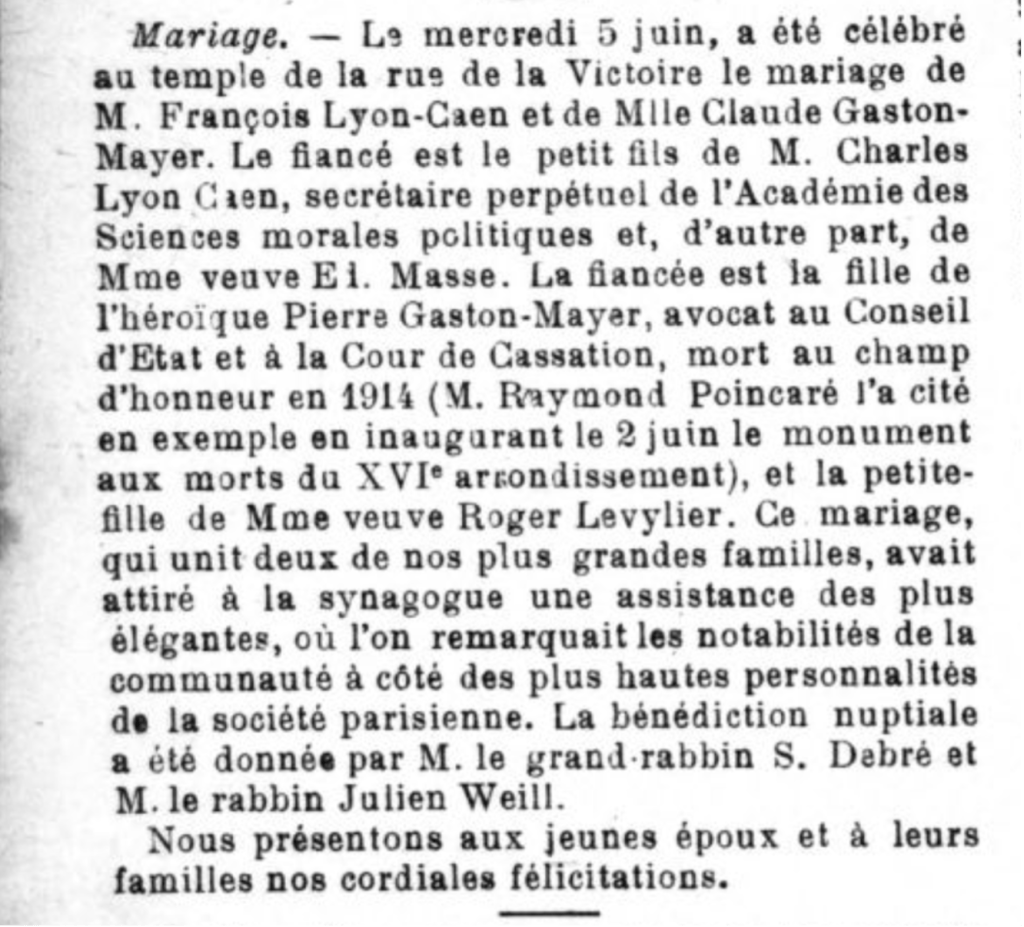 Source : L’Univers Israélite, 22 mars 1929