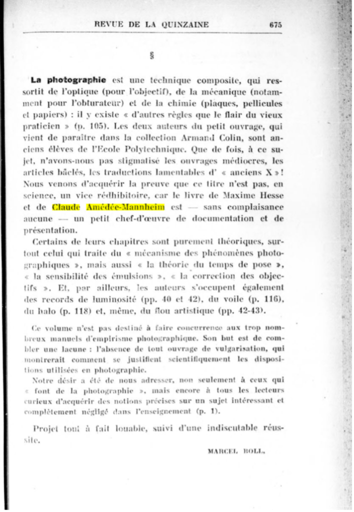Critique de l’ouvrage sur la photographie écrit par Claude Amédée-Mannheim et Maxime Hesse