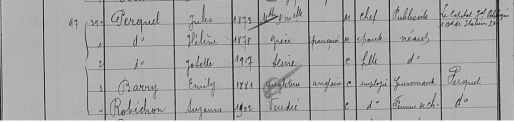 La famille Perquel au 42, avenue Henri-Martin, Paris (16è) dans le recensement de 1936.