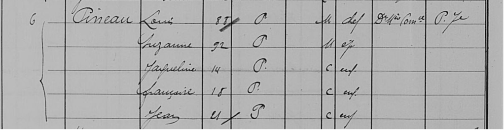 La famille Pineau au 37, rue Duquesne, Paris (7è) dans le recensement de 1936. Source : Archives de Paris (D2M8 566, vue 102/327)