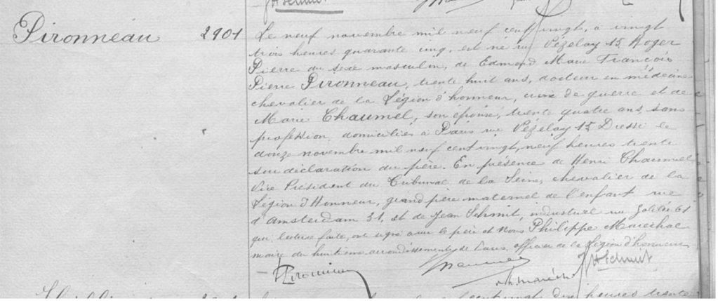 Acte de naissance de Roger Pironneau. Source : Archives de Paris (8N 184, vue 31/31)