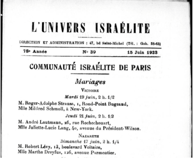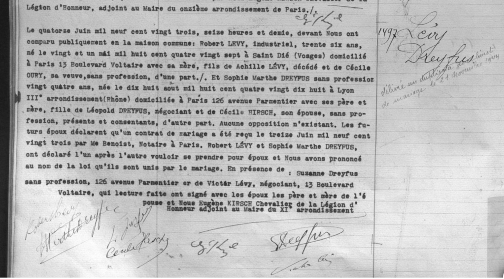 Acte de mariage de Sophie Dreyfus et Robert Lévy.