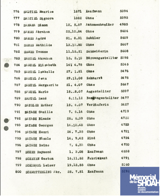 Le couple Samuel demeurant au 10, rue du Four, Paris (6è) dans le recensement de 1936.