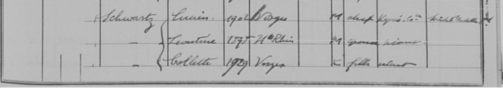 Lucien, son épouse Léontine née Lévy (1898-1992) et leurs deux filles Colette et Jacqueline demeurant au 270, bd Raspail, Paris (14è). Source : Archives de Paris (D2M8 617, vue 119/171)