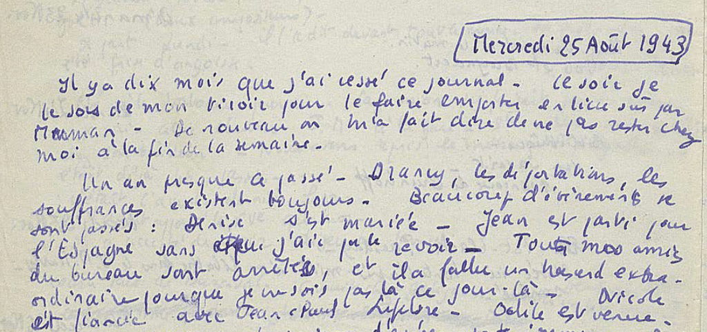 - Bandeau du site, Annotations 1942-1943-1944 et Ecarts : manuscrit du journal (Source : Mémorial de la Shoah/fonds Mariette Job)