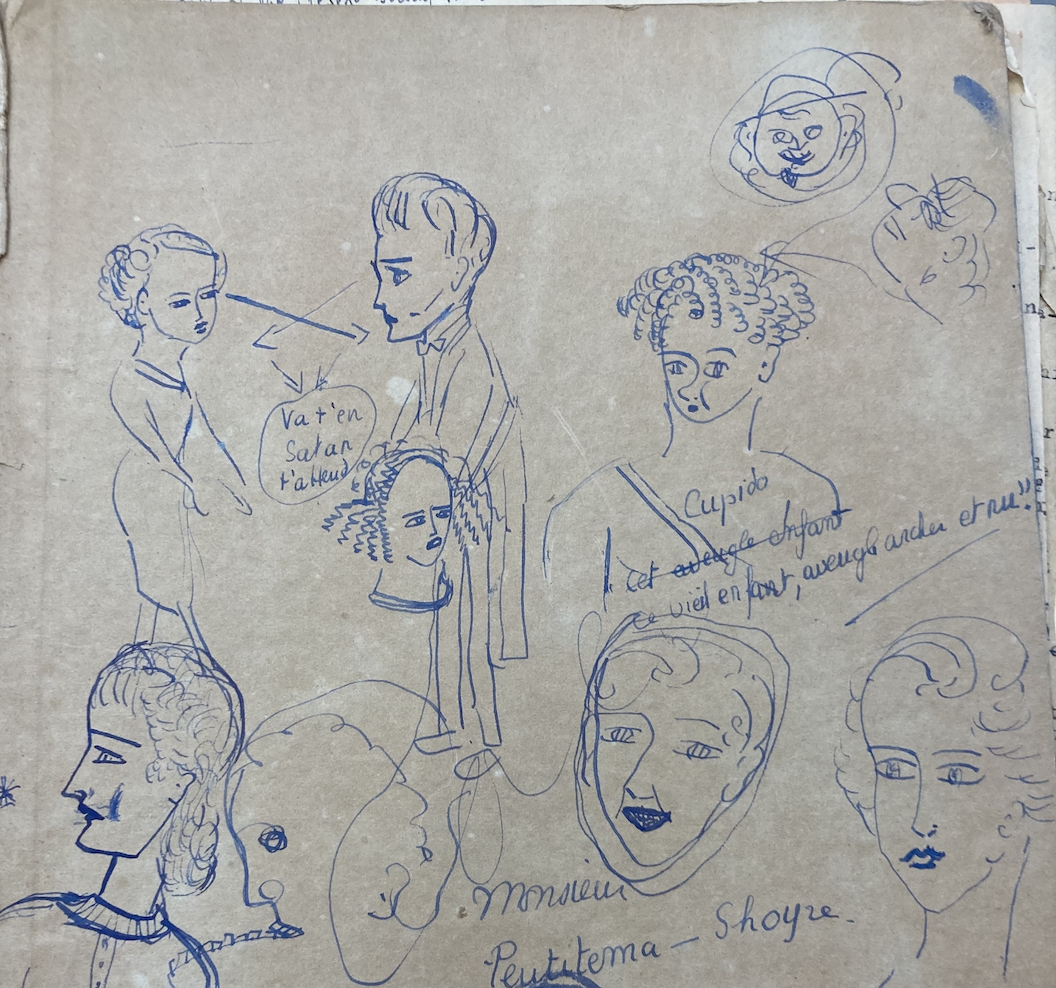 - Index : dessins d’Hélène sur la couverture de l’un de ses cahiers d’écolière (Source : Mémorial de la Shoah/fonds Mariette Job)